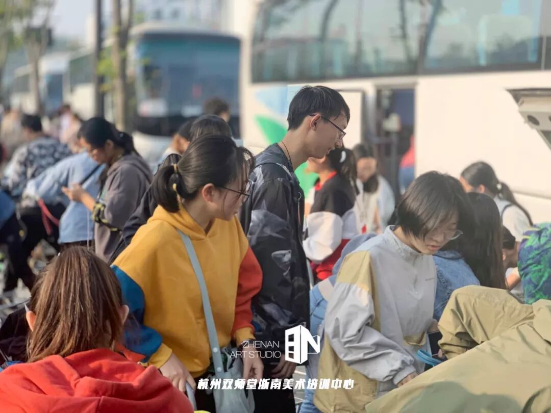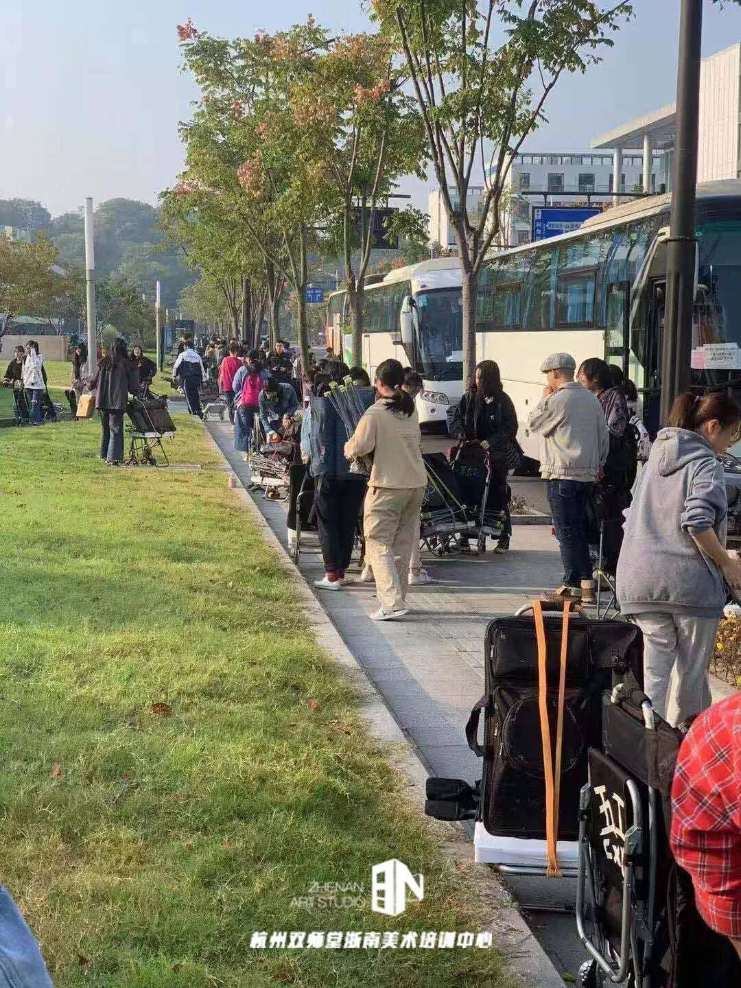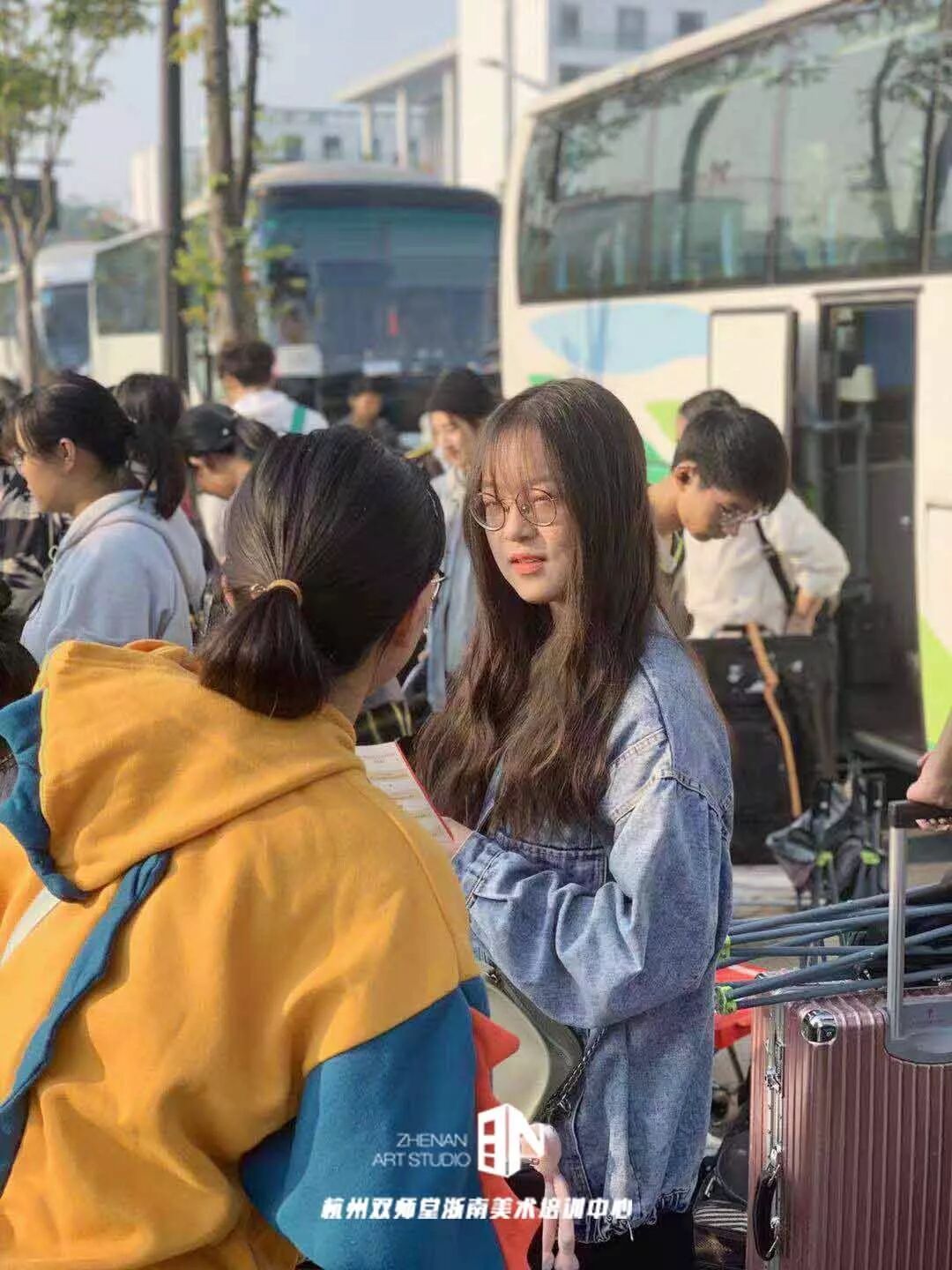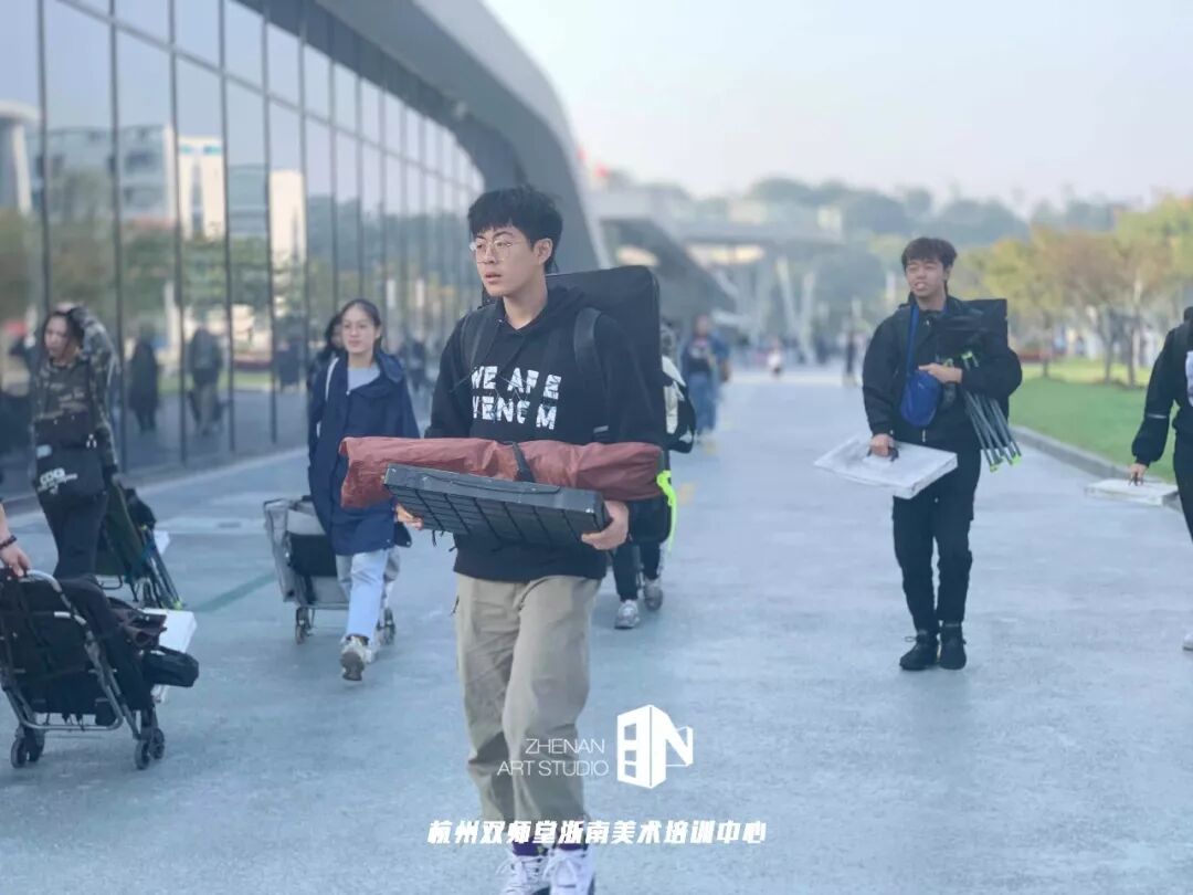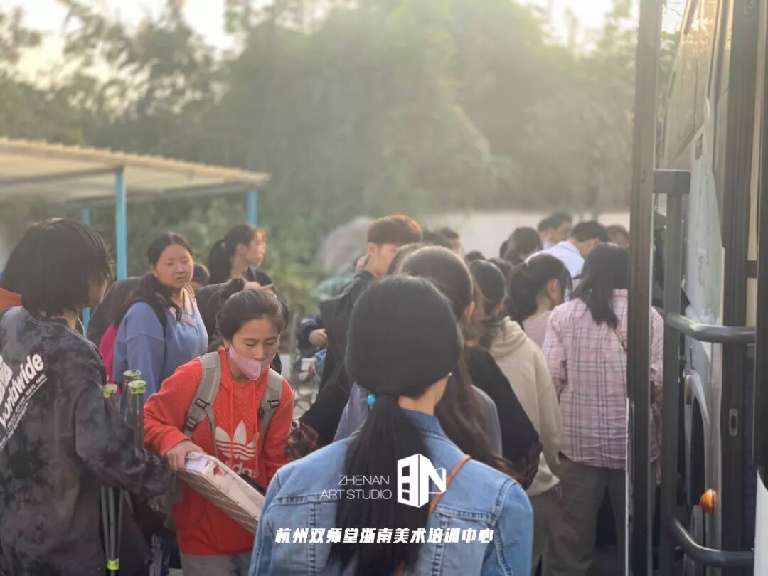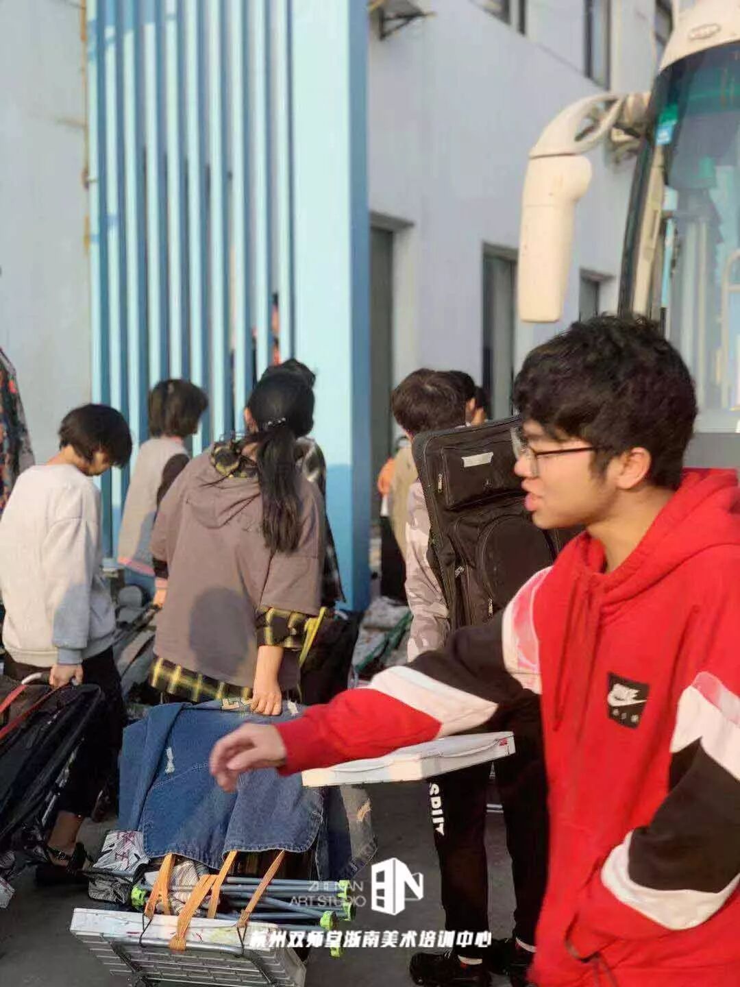 清晨6:40天气微亮,浙南学子们带着画材用具已经开始动身即将启程出发到模拟联考现场。