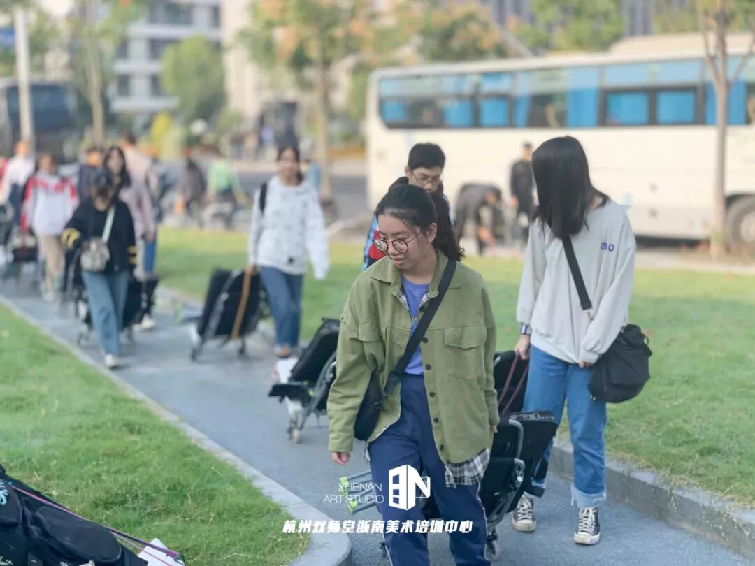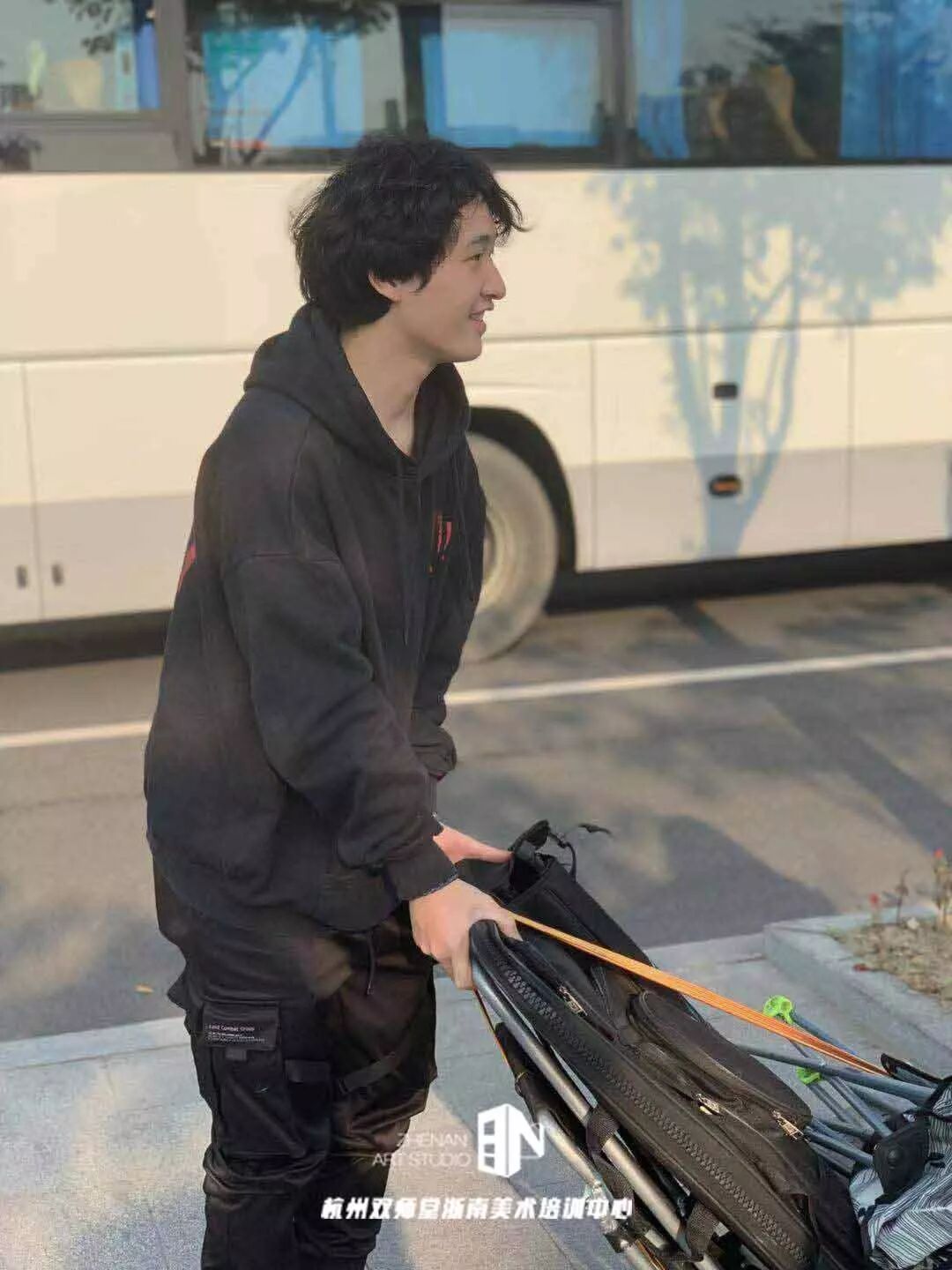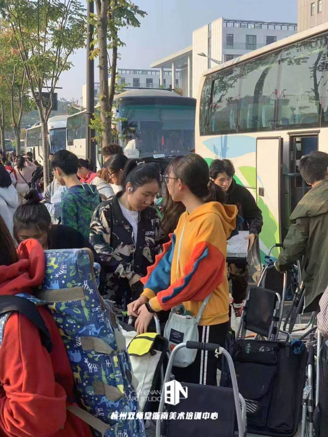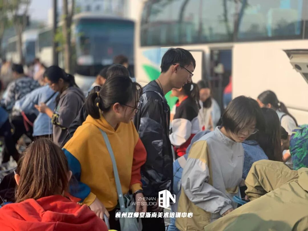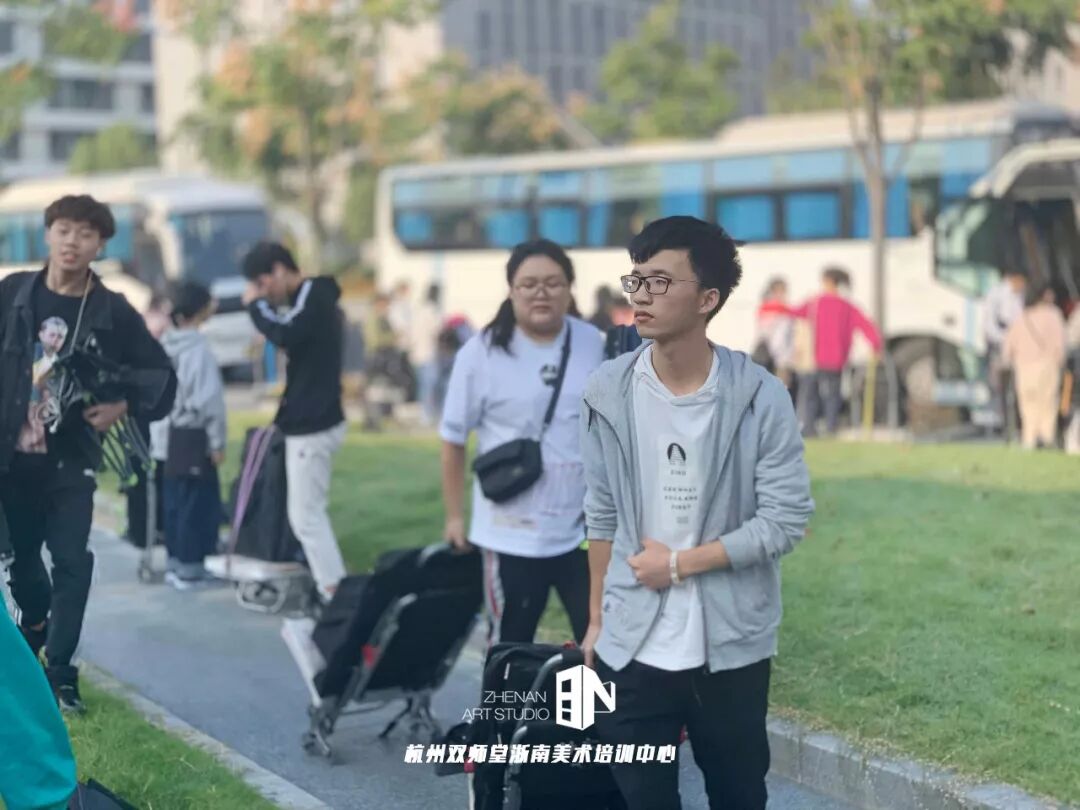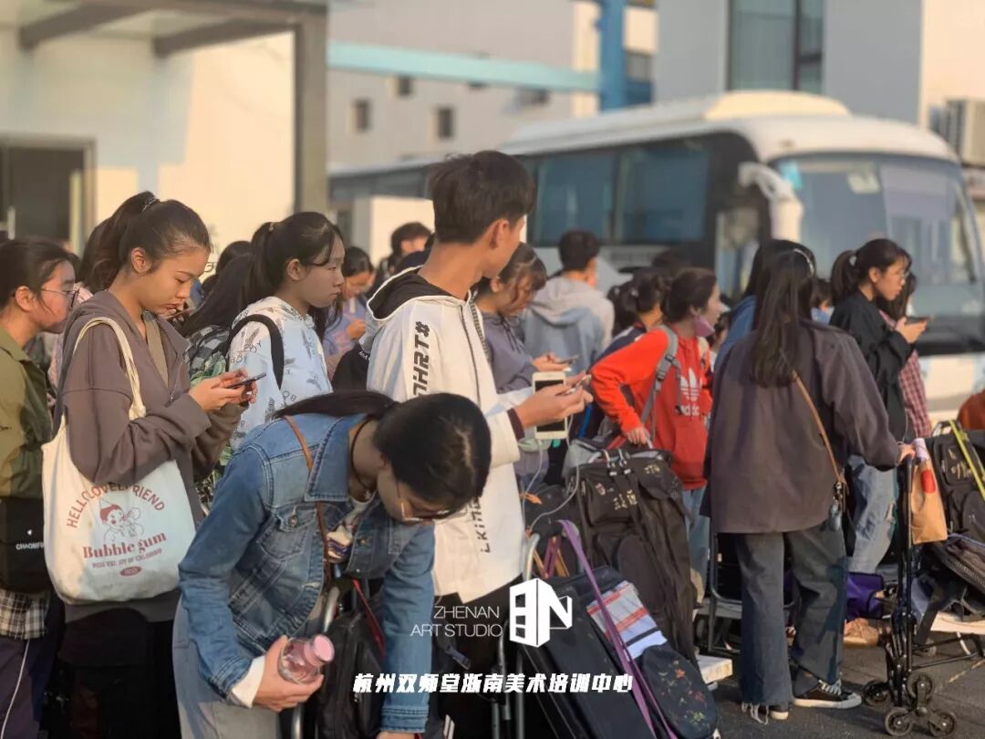 清晨6:40天气微亮,浙南学子们带着画材用具已经开始动身即将启程出发到模拟联考现场。