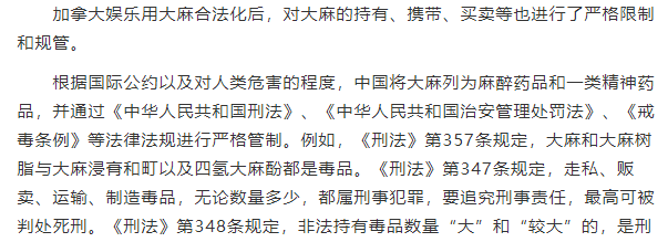 中领馆还特别提醒中国留学生和公民避免接触和使用大麻。无论数量多少都属于走私行为,此举属于刑事犯罪,将被追究法律责任,情节严重最高可被判死刑!