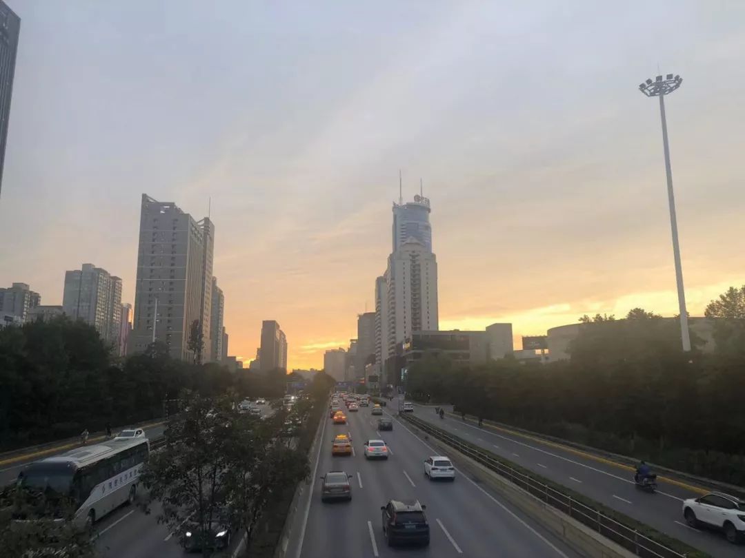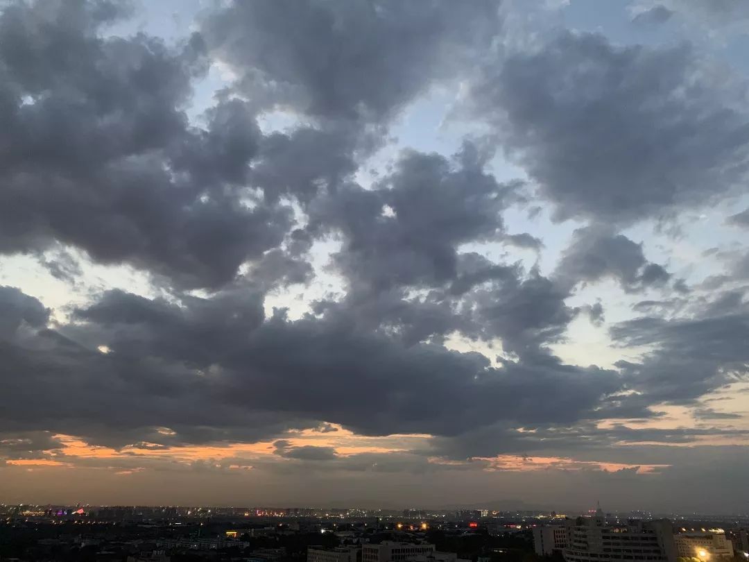 是傍晚,是黑压压尚未起灯的城市,云卷云舒,远方暗红色落日余晖还未散去,缠恋着这座城