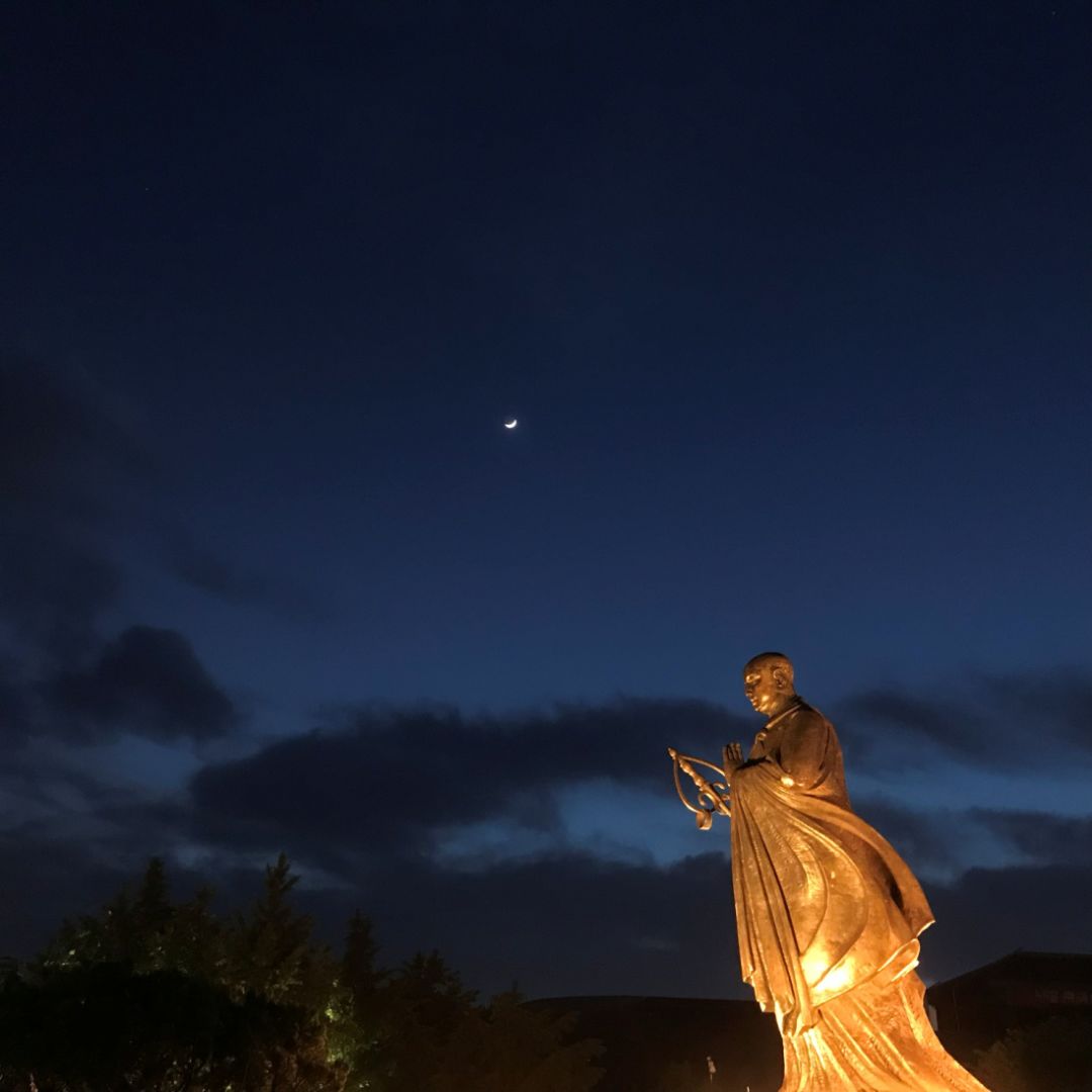 想必每一个老陕对这座位于大雁塔南广场的超大铜雕玄奘都不会陌生,夜色沉沉,玄奘雕塑在灯光的衬托下金光闪闪,像是披着璀璨金光的袈裟前行,踏上漫漫取经路。