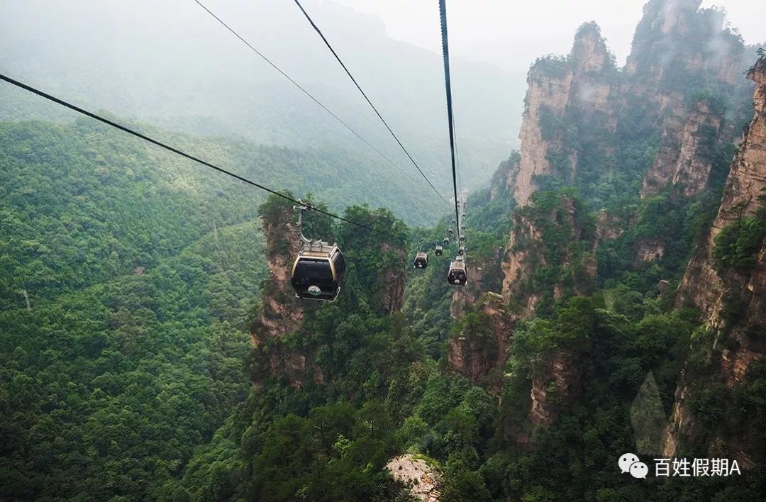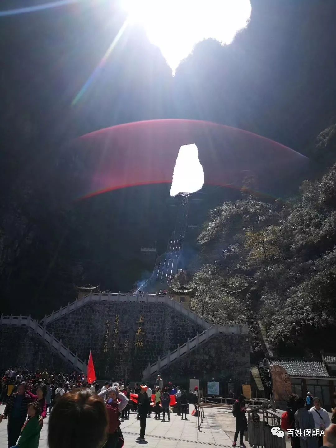 乘世界最长的高山客运缆车上山:游览天门洞开景区,体验“云在脚下,奇峰尽览,万象目中”的豪迈感觉。观天门山奇观: