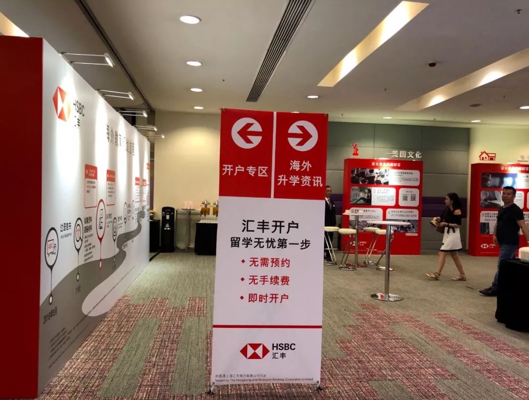 在10月于香港亚洲国际博览馆进行的SAT考试现场,汇丰银行于二楼特设专区,提供无需预约、免手续费的即时开户,助留学生率先迈出留学无忧的第一步。
