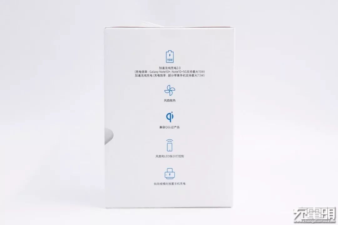 另一侧为产品名称:立式无线加速充电底座 2019。