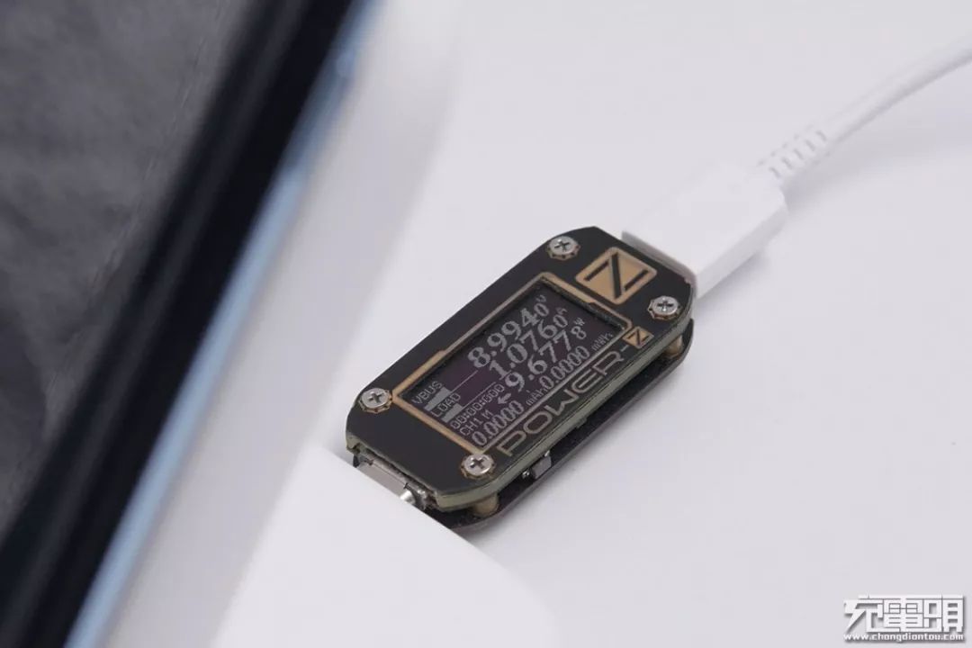 使用ChargerLAB POWER-Z KM001C便携式测试仪对输入端进行检测,此时输入功率9.7W(8.99V1.08A)。