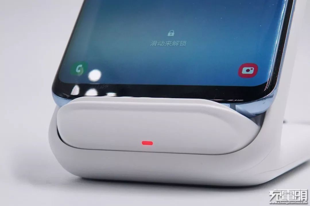 放上手机,不同颜色LED灯指示不同的充电状态。