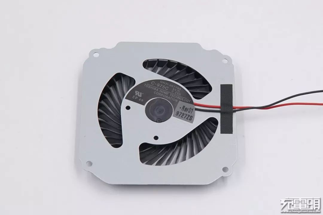 拆下充电器后面的罩子,里面是一只散热风扇。