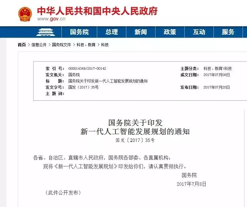2017年7月,国务院发布《新一代人工智能发展规划》,首次提出“三步走”目标战略,宣布举全国之力在2030年抢占人工智能全球制高点。