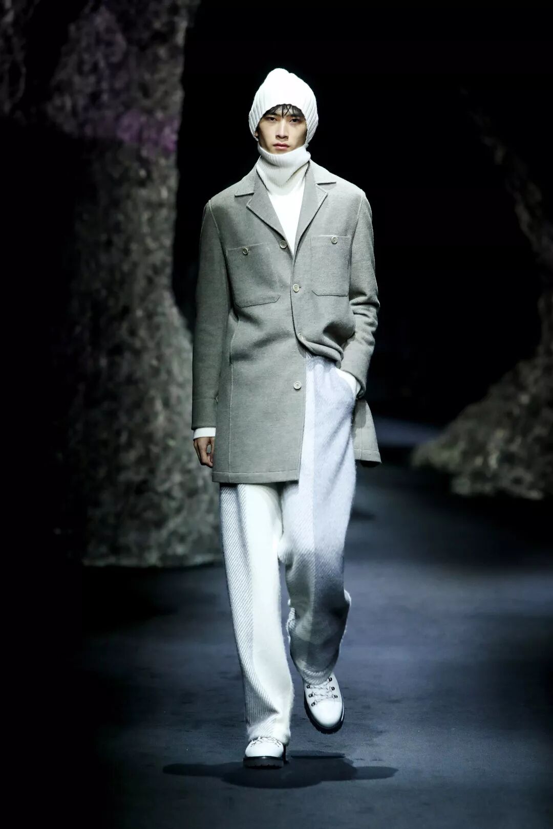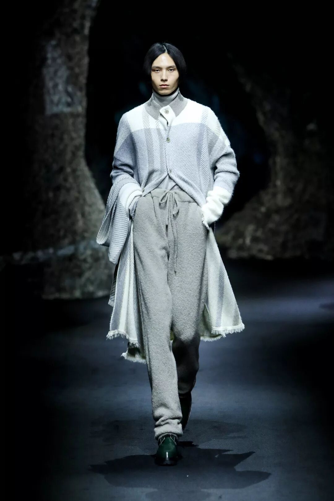 多场景轻松着装的理念在男装部分得到了充分的体现,男装系列将羊绒单品及运动单品进行混搭,羊绒大衣搭配雨衣、粗纺羊绒针织搭配滑雪羽绒服,让男士的冬季造型兼具功能性与时尚度。