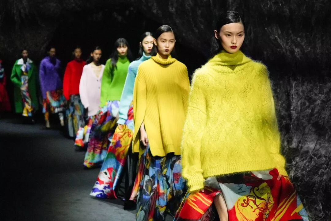 ERDOS 2019秋冬大秀中,我印象最深刻的LOOK莫过于压轴的那几套羊绒印花裙,将高饱和度色彩演绎的羊绒衫与夸张印花相结合,极具视觉冲击力。