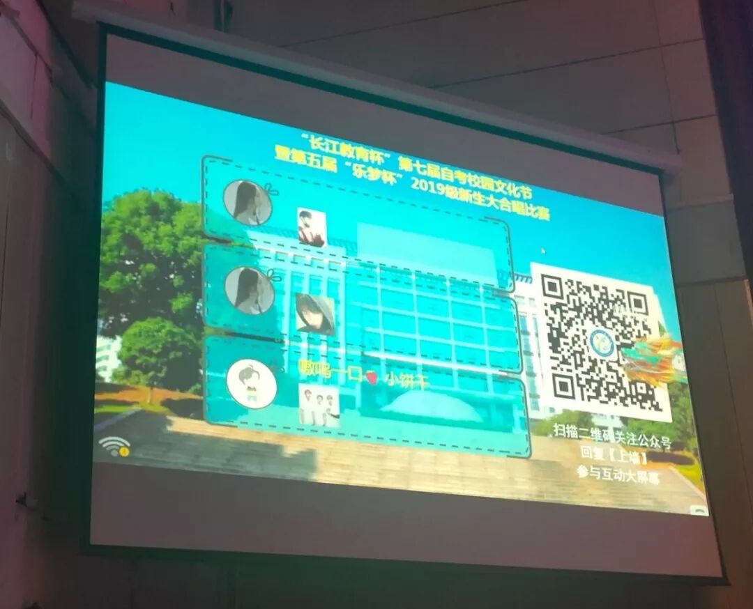 比赛采用了视频与演唱相结合的方式,现场观众通过微上墙进行互动,充分调动了现场的氛围和师生的积极性。