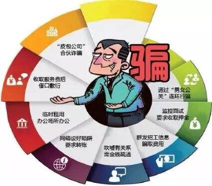 之前我们介绍过“双簧”招聘诈骗。是指一些劳务中介所为了获取应聘者的信任,与一些骗子公司或皮包公司合伙进行诈骗。先是网络发布广告,邀请应聘者上门面试并由中介单位以推荐工作为名收取报名费、服务费,后由骗子公司或皮包公司假装招聘工人,收取体检费、服装费、押金等费用,再编织种种理由拒绝受害人上岗或中途辞退。此类案件因为有面对面的接触,打击起来也相对容易。