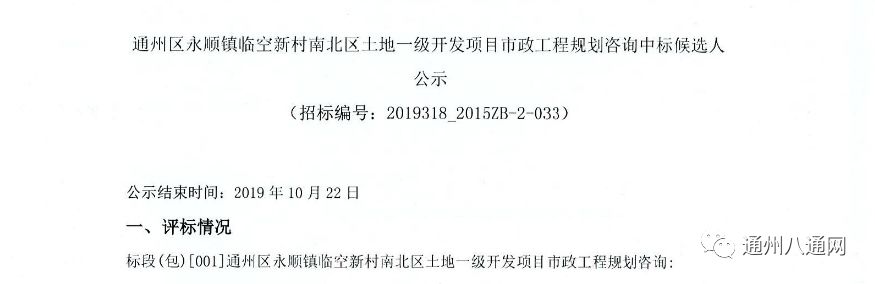 永顺镇临空新村土地一级开发项目又有新消息啦!八通网(bjbato)获悉,该项目路网综合规划方案及市政工程规划相关中标候选人近日公示啦。