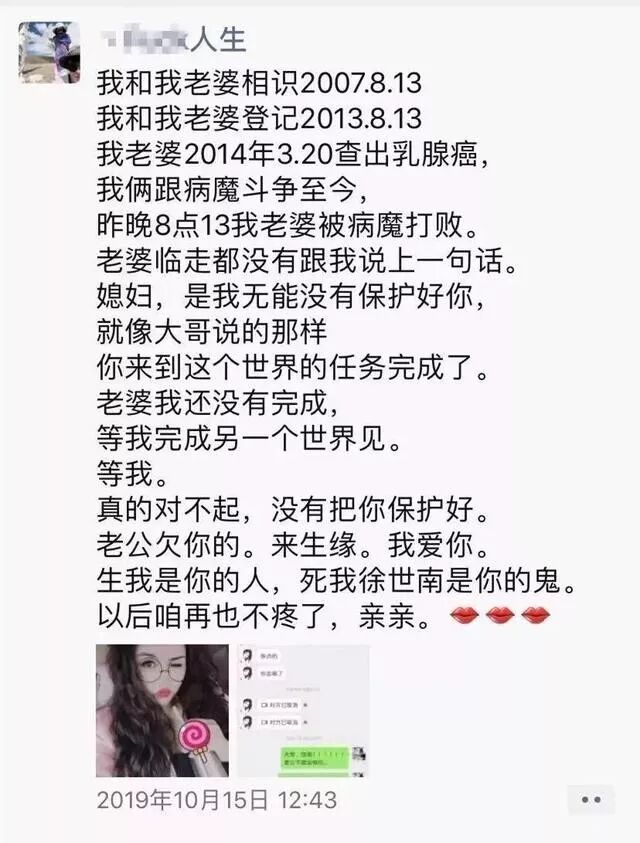 “我今年35岁,现在是凌晨十二点半,我走在大连殡仪馆的路上,去陪伴我34岁妻子的最后时光,我愤怒,但是愤怒来自哪里?我不知道!老婆,放心吧,对我来说,痛苦一生是必然的,倒下那是绝对不可能的……”这是35岁的徐世南发在朋友圈里的一段话。