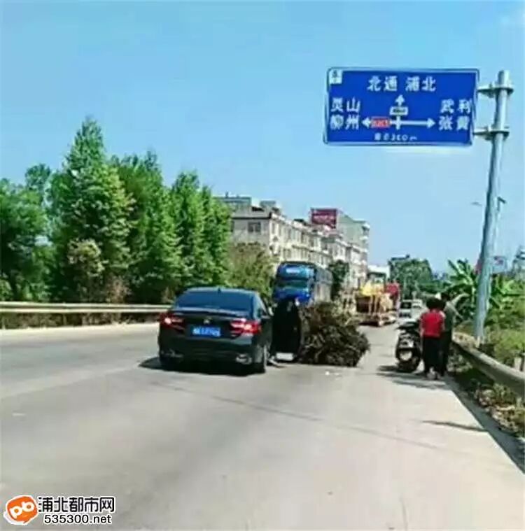 昨日中午,在北通至浦北的路段上,一台摩托车竟想充当货车搭树木或草枝之类的东西后在路上翻倒,幸无造成严重后果!请大家注意安全,不要以身犯险!