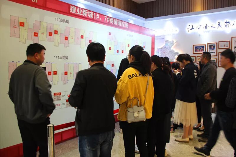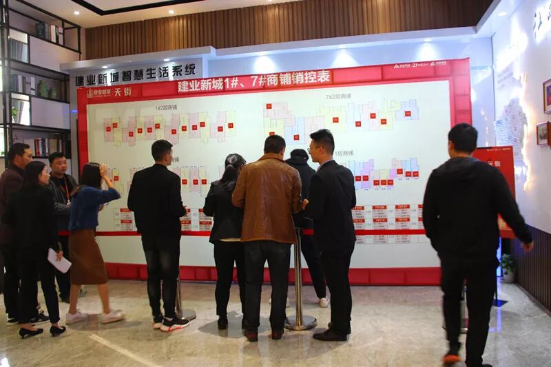 在工作人员的引导下,选铺活动紧张有序地进行着,抢铺的氛围蔓延全场,在不断的喊号声中,商铺销控板一路飘红。审核区、出单区、收款区、回单区,看到的都是繁忙的身影。