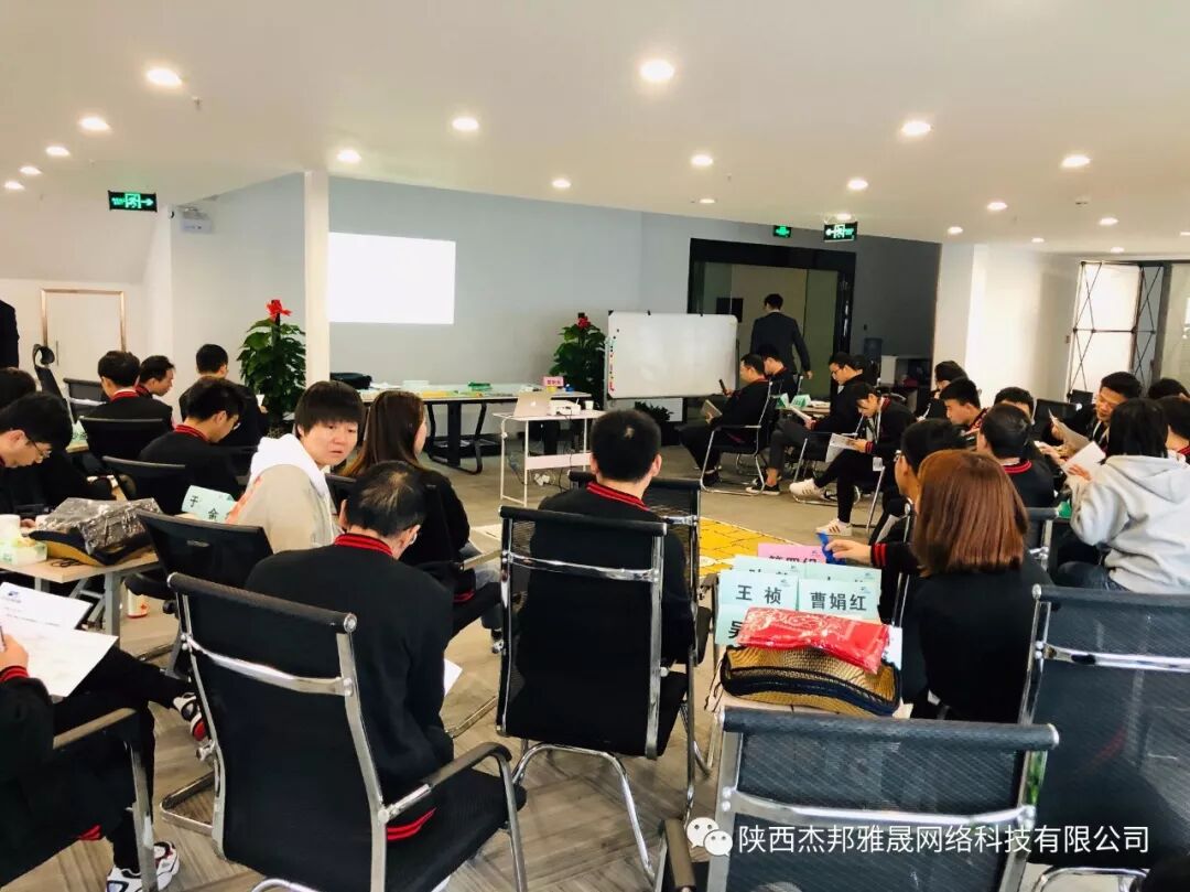 2019年10月19日上午,陕西杰邦雅晟网络科技股份有限公司在培训室,开展了将近六个小时的《沙漠掘金》课程培训。此次活动公司全体人员全员参与,旨在提升公司的团队组建及合作、资源分享及利用、风险管理及把控等方面的综合能力。游戏以探险的方式,引导学员在实战演练中实例分析团队融入、以及团队管理上的一些重要理论和方式,使学员更容易理解和接受。