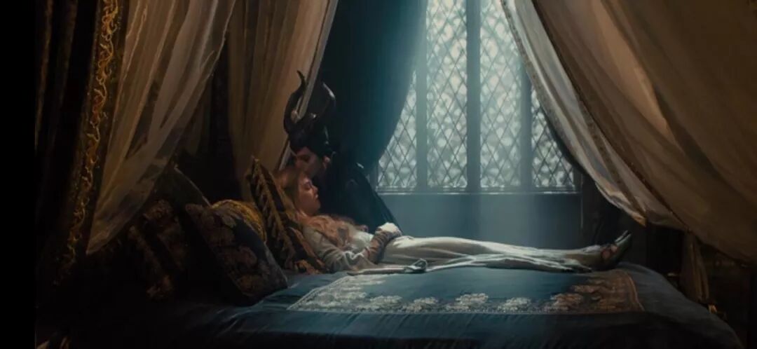 就像你看到的睡美人故事里的那个诅咒,国王烧掉了那个坏东西,并且派三个精灵照顾着爱洛。女主监视着他们,一开始她想伤害小公主,但渐渐的就不舍得了,小丫头一天天长大,并且认了女主做教母,女主突然改变主意想要保护这个小公主了。