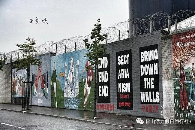 位于贝尔法斯特城西和平线上的“和平墙”是为了隔离天主教徒和新教徒居住区而建的,因为曾经双方在这一地带爆发过十分血腥宗派暴力事件。