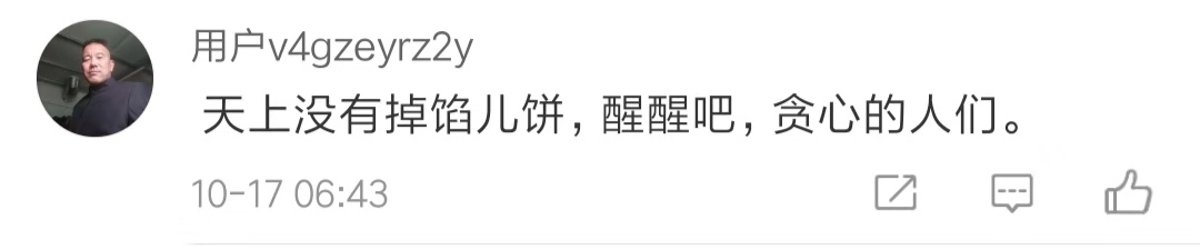 网友气愤地表示:天上没有掉馅饼,贪心的代价就是一无所获