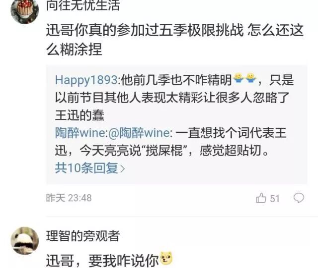 网友们表示,这样的王迅实在带不动,都玩五季了,还是又蠢又傻,看得人着急又生气。甚至有人直言王迅不适合这样的节目,求“退出”。
