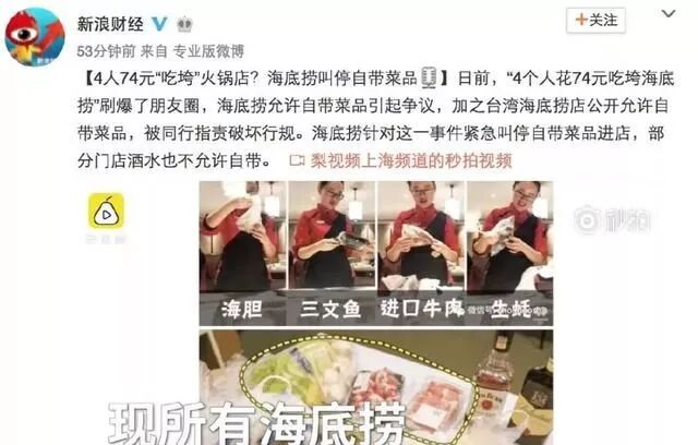 海底捞就宣布取消自带食材服务