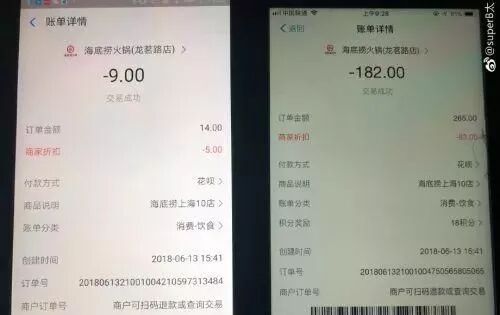 还晒出了吃两顿火锅的账单,
