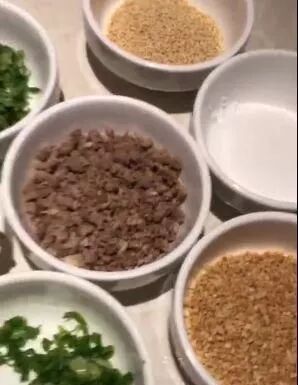 牛肉粒、葱花、盐等等