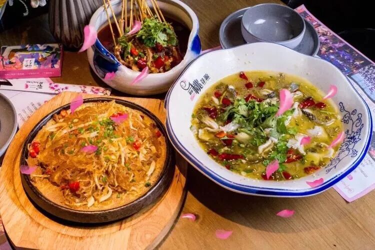 还配有口感脆嫩又开胃的酸包菜和劲辣的野山椒。口感是既爽脆又软韧弹滑。