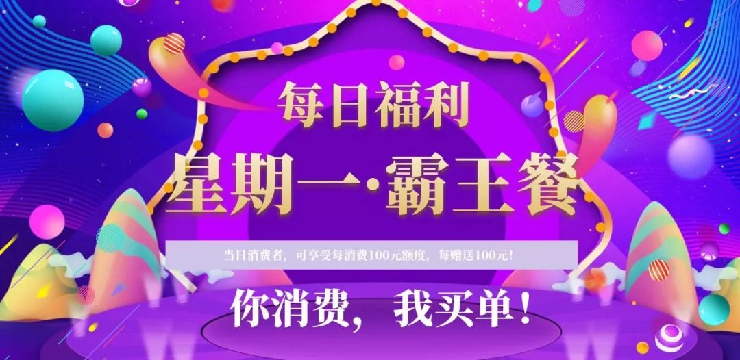 1、当日消费者,可享受消费每100元额度,每赠送100元消费额度。