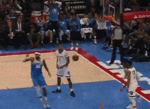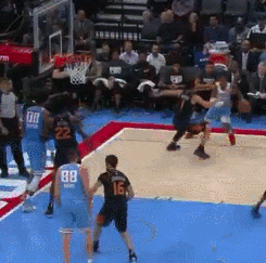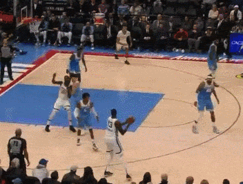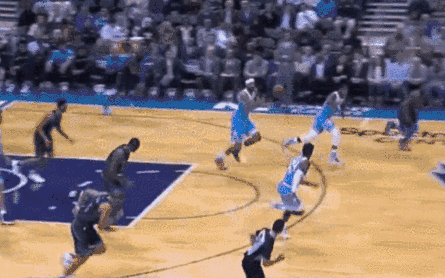 像下面gif中这种球突进去之后直接抛投就好,不要想着为考利斯坦妙传一个能直接扣篮的球。
