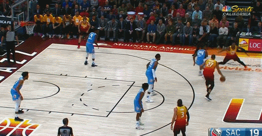 上个赛季客场对阵公牛的比赛,当时的背景是公牛在之前一场刚刚惨败56分,正想找回颜面,而国王面对这种情况明显准备不足,半场过后,希尔德6中1,国王落后11分。我们接下来看看希尔德在下半场是如何防守的。