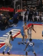 看到对方高个子小杰伦-杰克逊球员把球拿下来之后希尔德便上去掏球,在一番角力之后,居然从小杰伦-杰克逊手中夺过了球