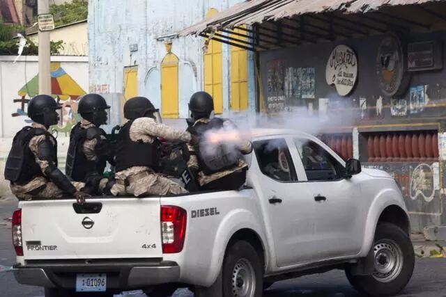 目前维持首都秩序的智利军警总人数已超过9000人了,他们在街头向示威者不断投掷催泪弹。
