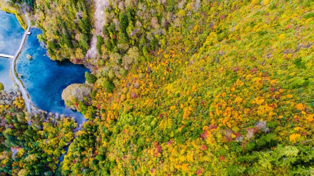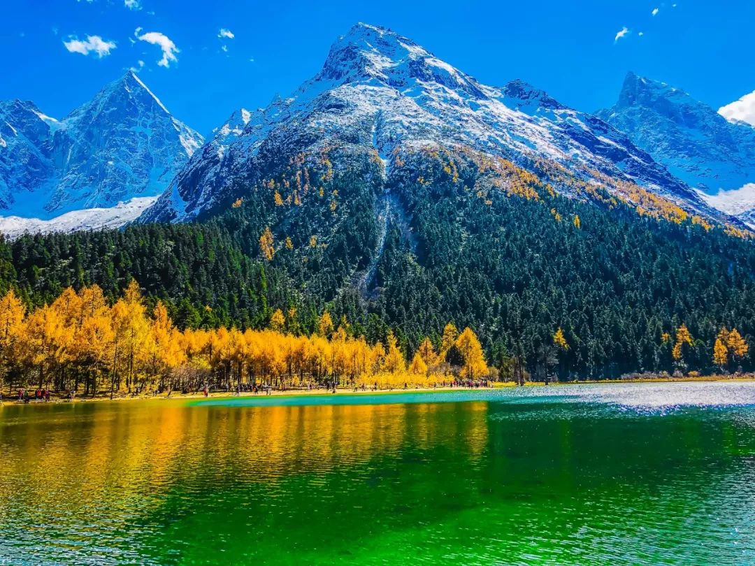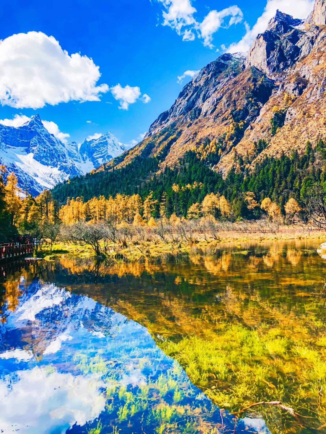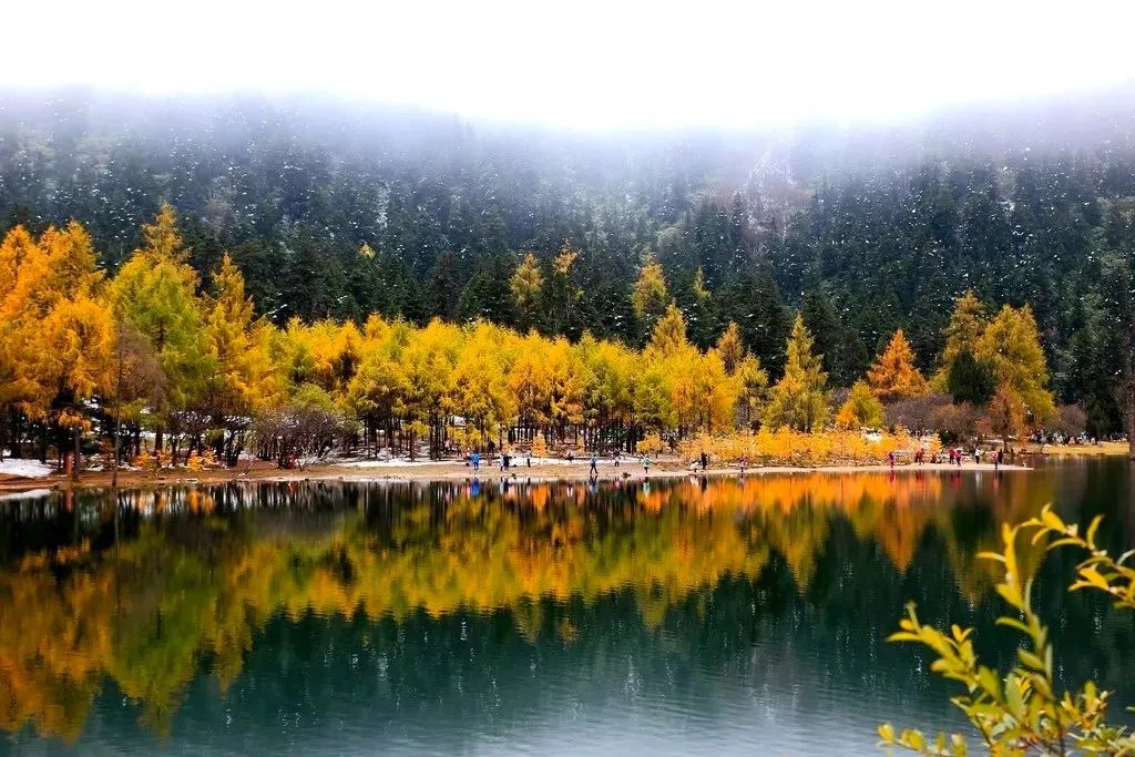 毕棚沟的秋天拥有着各种各样奇妙的彩林景观,阳光斑驳的彩林、白雪飘飘的彩林、云雾弥漫的彩林、雪山下的彩林和碧湖里的彩林......美不胜收!