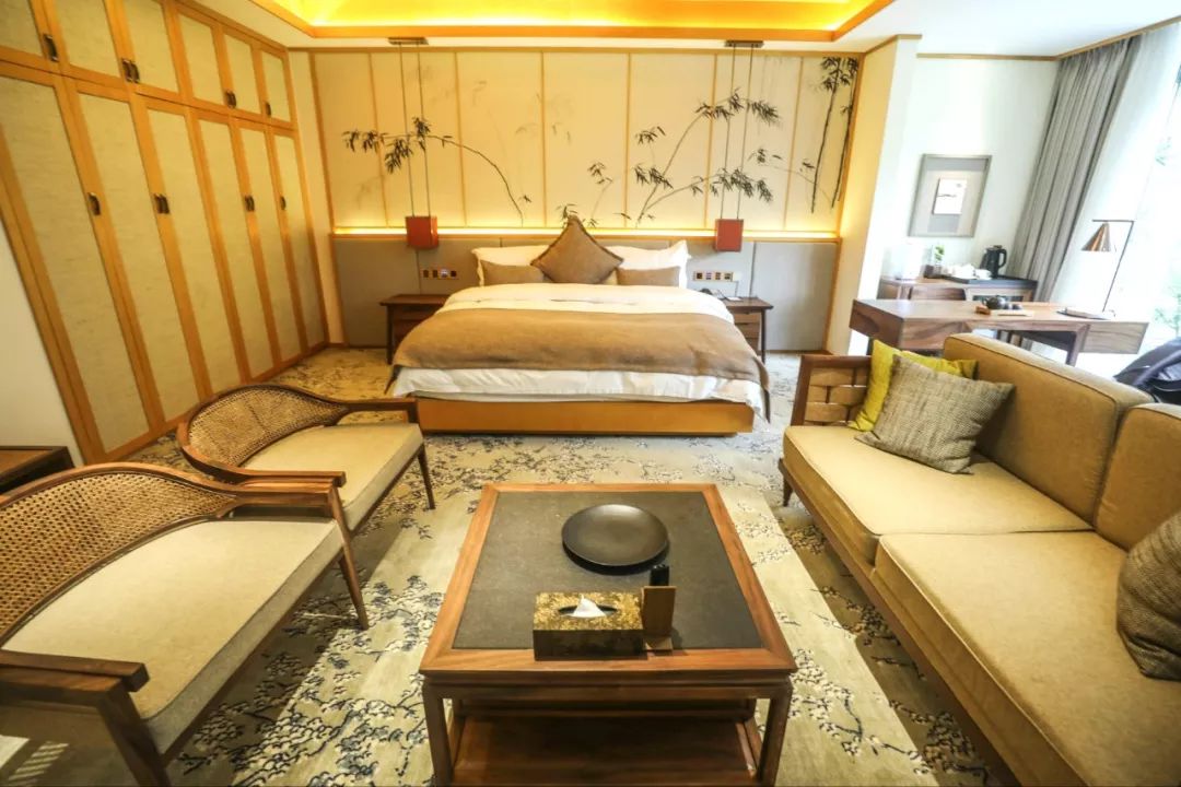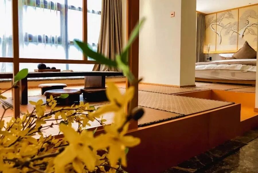 依山而建的酒店,石头砌的墙、温馨的房间、日式的装修风格、柔和的灯光、大大的落地窗,融于自然,亲近自然。