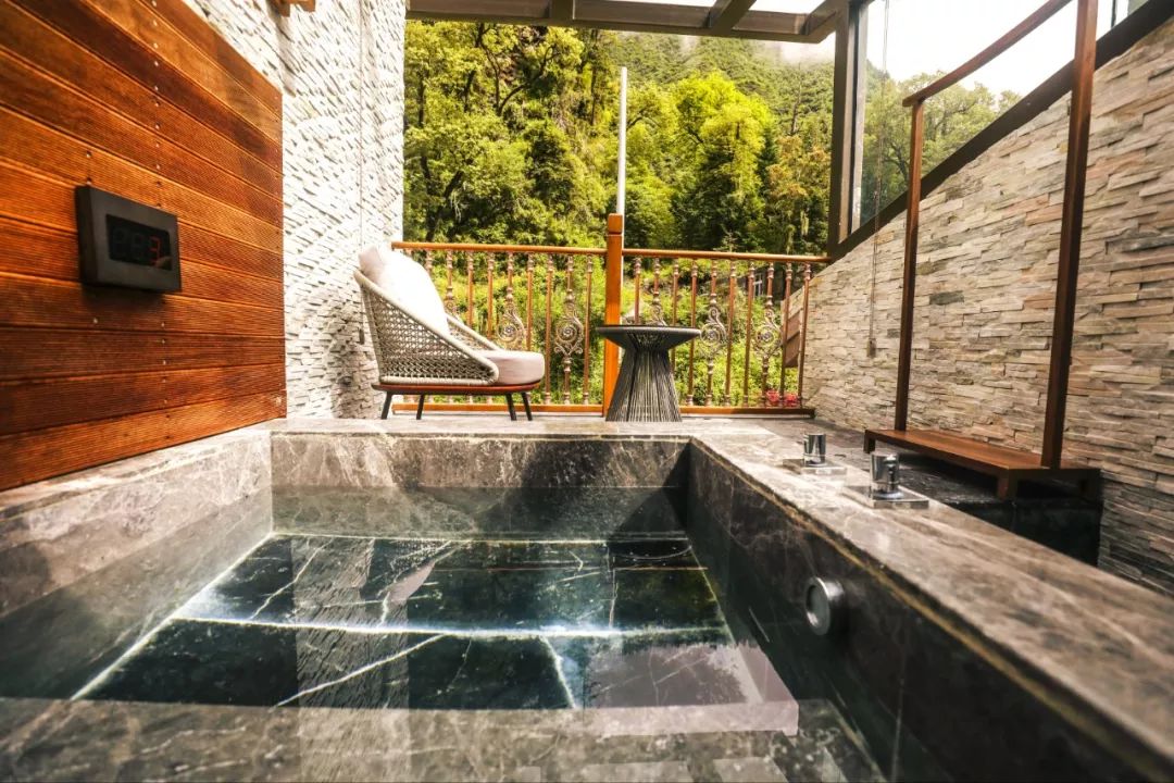 娜姆湖温泉酒店,房间里配备有独立的私密温泉,躺在温泉池里享受私密的温泉时光,想泡好久泡好久!