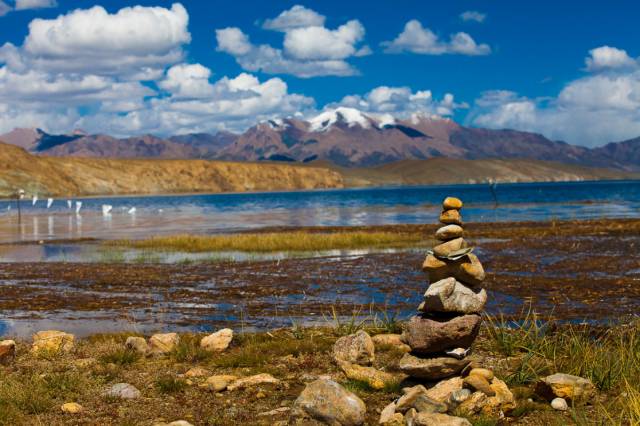 这里是“中国贝加尔湖”,来自喜马拉雅山脉的咸水湖,湖水湛蓝清透,湖中小岛犹如巨龟,静静地守护着这位“少女”。