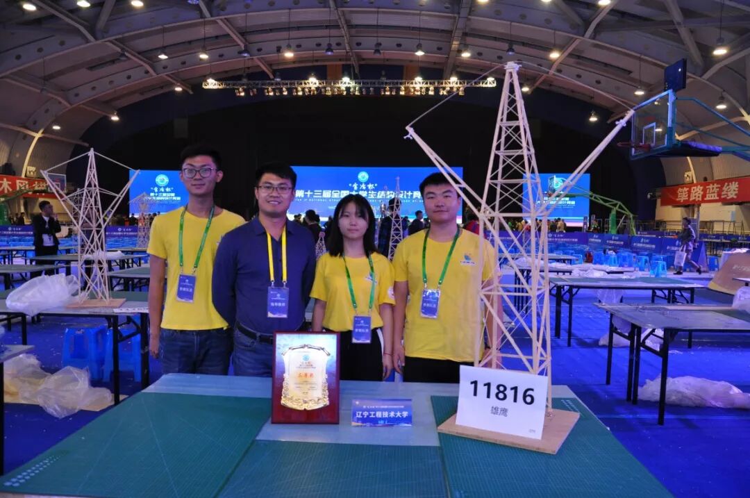 在筹备此次竞赛的过程中,我校指导教师与参赛学生都付出了大量心血,经历8个月的准备,通过院校、省级竞赛的选拔,制作了百件作品的试验,“雄鹰”团队,冲刺国赛。四天的比赛时间里,本着质量最轻承载力最大的原则,参赛队员不断改进、尝试、创新,有效增强了参赛作品的承载力与美观性,并以较轻的模型质量获取了较大刚度。最终,我校参赛作品顺利通过模型制作、现场答辩、加载环节荣获了全国三等奖的好成绩。