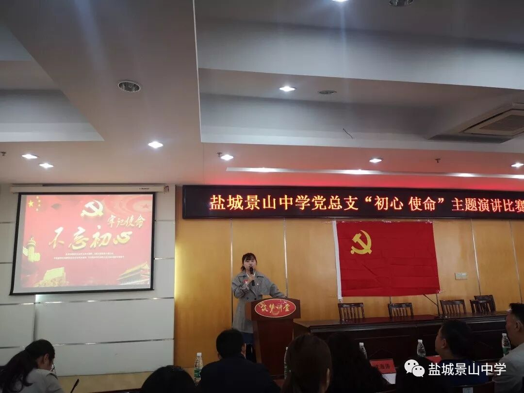 不忘初心再出发,牢记使命勇担当!为深入学习贯彻习近平新时代中国特色社会主义思想和党的十九大精神,精准服务“不忘初心、牢记使命”主题教育,生动展示我校广大党员教师干事创业、甘于奉献、奋发有为的精神风貌和感人事迹,我校于10月21日下午隆重举行盐城景山中学党总支“初心·使命”主题演讲比赛。通过演讲的方式,来进一步引导广大党员教师坚守初心、践行初心、牢记使命、担当使命!本次演讲活动由王娟主任主持。