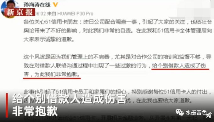 孙海涛表示,“这个风波是因为我们管理上的不完善,尤其是对合作公司的培训和监督不够,导致在对借款人联络沟通过程中出现了一些过激的行为,给个别借款人造成了伤害,为此我们非常抱歉。”