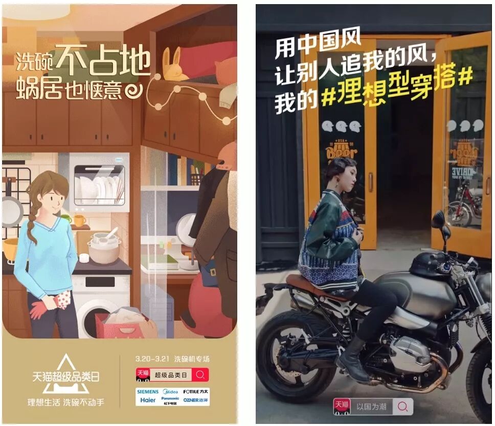 (2)创意的连贯性:创意的连贯性是指无论什么样形式的创意,在某一段时间内,需要有一条线将其贯穿起来,让创意形成合力,通过一个个连贯的创意强化用户心智。我们以天猫为例,在提出“理想生活上天猫”的沟通主张后,天猫的一系列创意,都围绕“理想生活”展开,“理想生活”就是贯穿天猫创意的那条线。