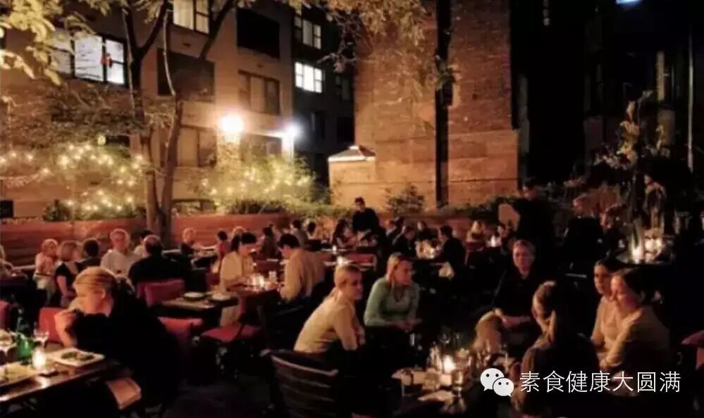 说到纽约的高端素食餐厅,就不能不提到Pure Food And Wine:与热闹的Union Square(联合广场)相隔一个街区,闹中取静,最让人称赞的莫过于餐厅后院的可以容纳70个人花园,夏天的夜里,桌子上的蜡烛和树上星星点点的灯亮起来时,那种浪漫温馨的氛围会让用餐的心情也变得特别美好。