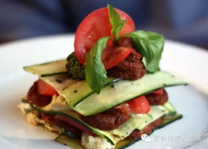 口感层次丰富的美味生食意大利千层面,芝士是坚果做的,面皮则是绿色的节瓜。