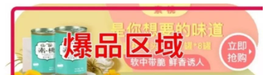 再下面是我们的爆款的区域,第一个我们需要了解的问题,我们的每周爆品是周几开始?是周三的十点钟开抢。那么这周我们的爆品是什么,是我们素店联名的一个黄桃罐头的一个产品。