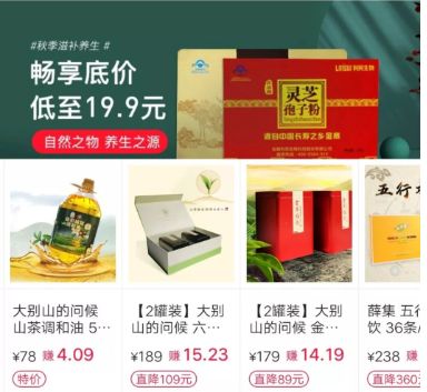 再往下是九块九的,19块九的和29块九包邮的。三个不同价位的一个剁手区的一个特惠区。那这个也要非常的熟悉,因为这是一个非常好的一个引流的区域,比如前段时间我们一款九块九的口红,卖出去了一万多单,也就是在这个区域。你们每天要不断的去在里面找一些好的宝贝出来,分享到你们的社群当中去。