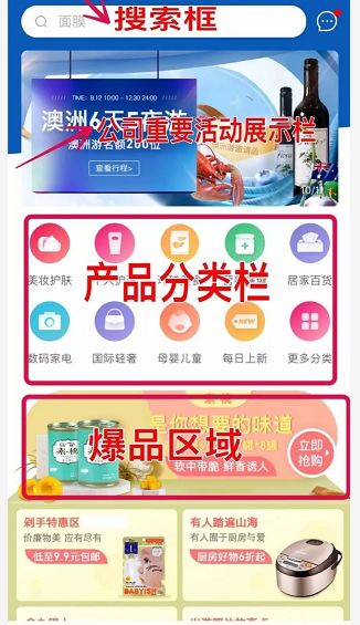接下来是一个商品的主题场,商品主题场会有两大主题场,整个区域也都是特价的,所以我们说从分类来看,有爆品区域和特价区域。