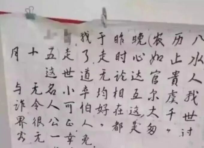 这是南京一名81岁的独居老人,家中遗书上的话。