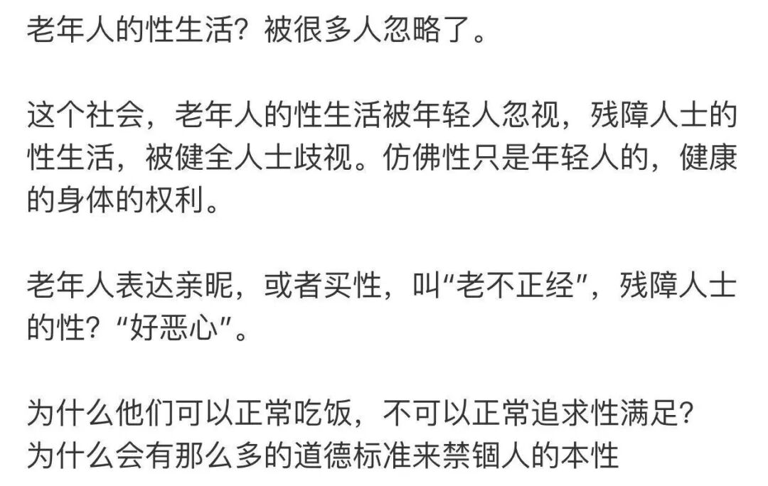 老年人的需求从不被尊重和理解, 他们自己更是难以启齿。