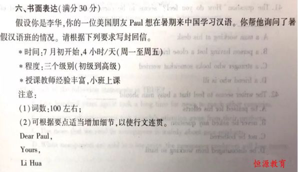 I am so glad that you are planning to take a summer course inChina. Our university runs summer Chinese lan-guage courses at three levels , form beginning to advanced, All the courses start in early July. Lessons will be givenin small of no more than ten students. You will get a lot of practice in such a class. All classes are taught by teach-ers with rich experience in teaching foreign students. Classes' meet four hours a day ,five days w week Monday though Friday. If you decide to come or need any further information,do let me know.